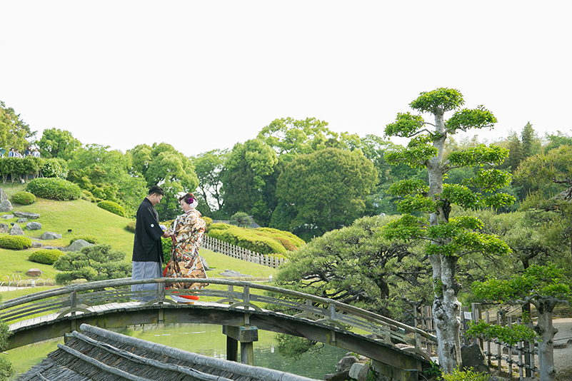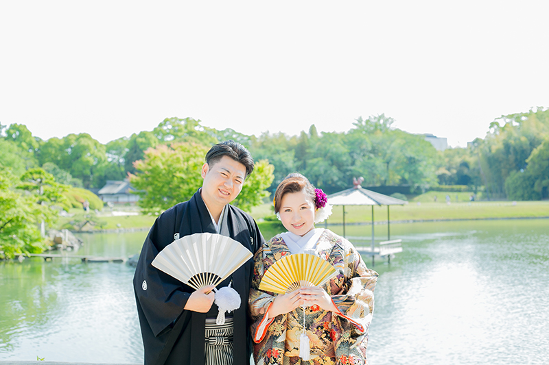 日本三名園の美しく整えられた園内は、和装との相性が◎です!