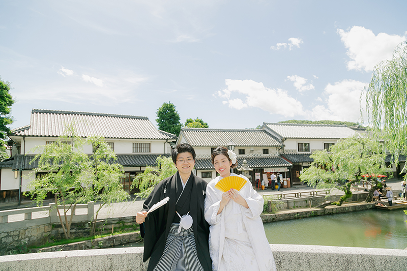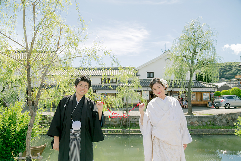 倉敷川沿いに、爽やかな笑顔で 前撮りされている お二人を 発見☆☆