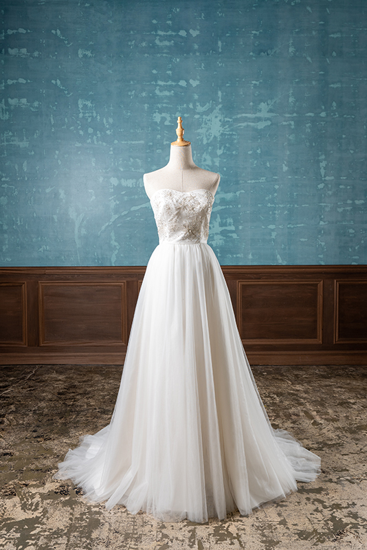 可愛らしいプリンセスラインで正統派ながら、