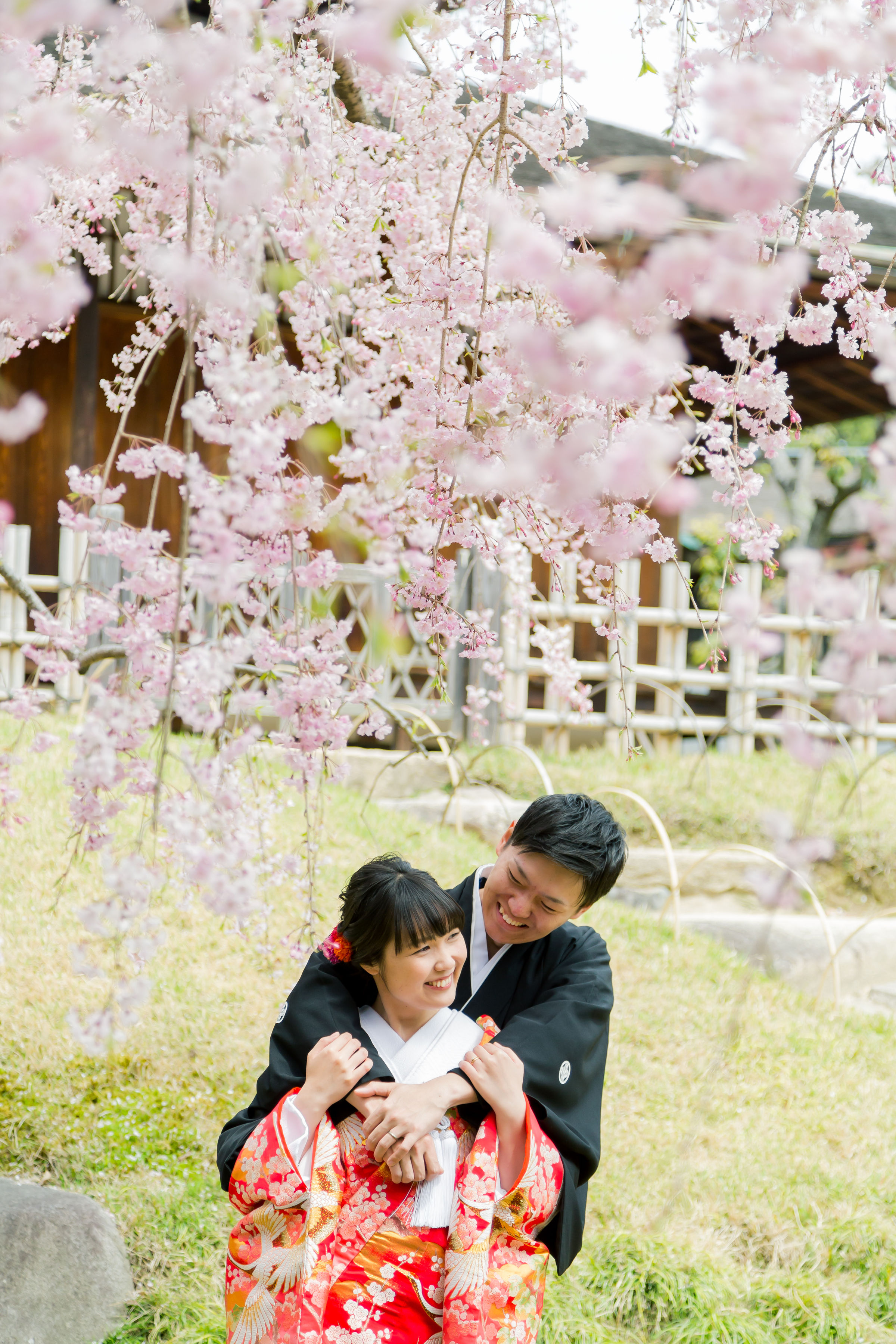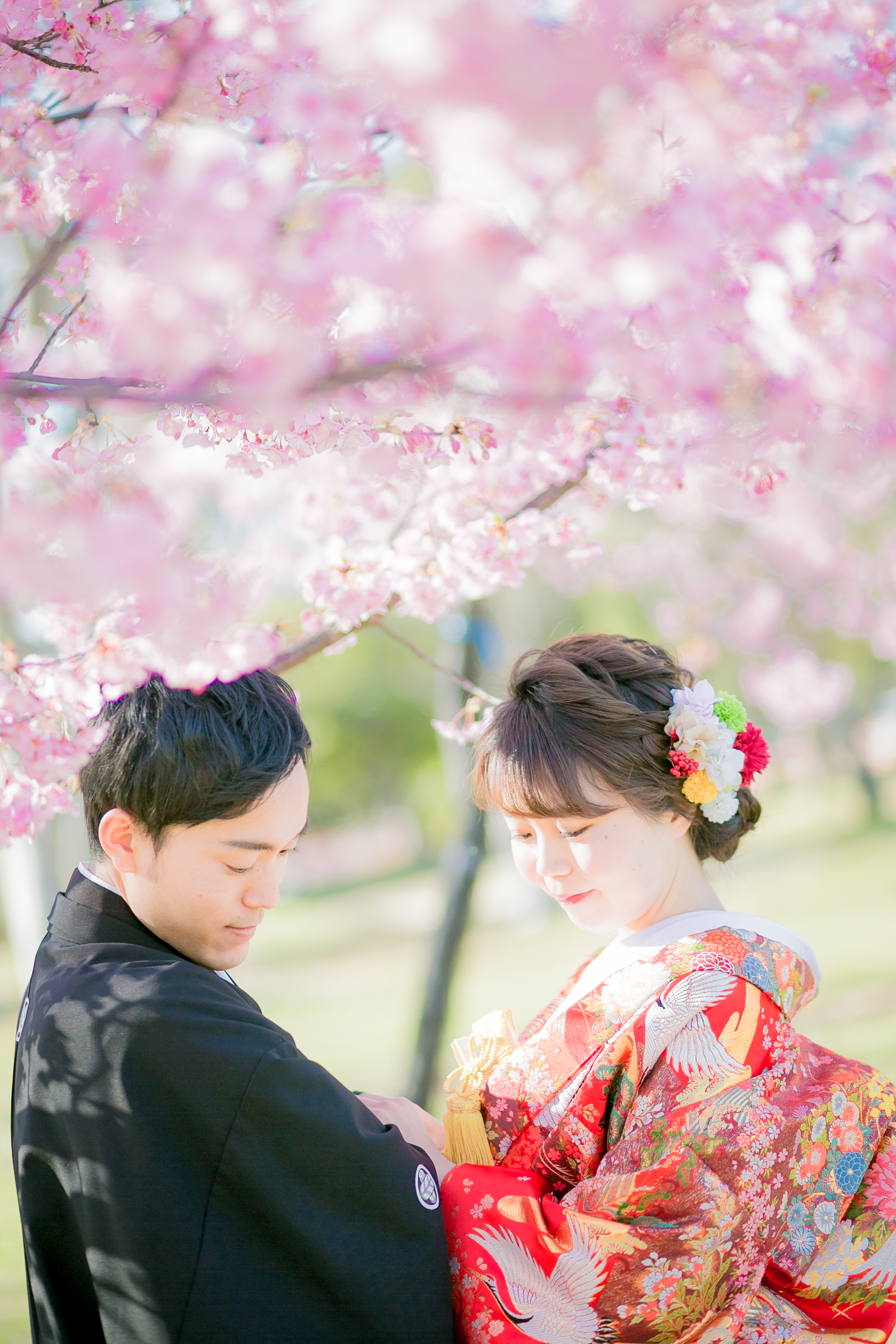 ピンクの桜に包まれた、とっても幸せそうなお二人の1枚♪♪
