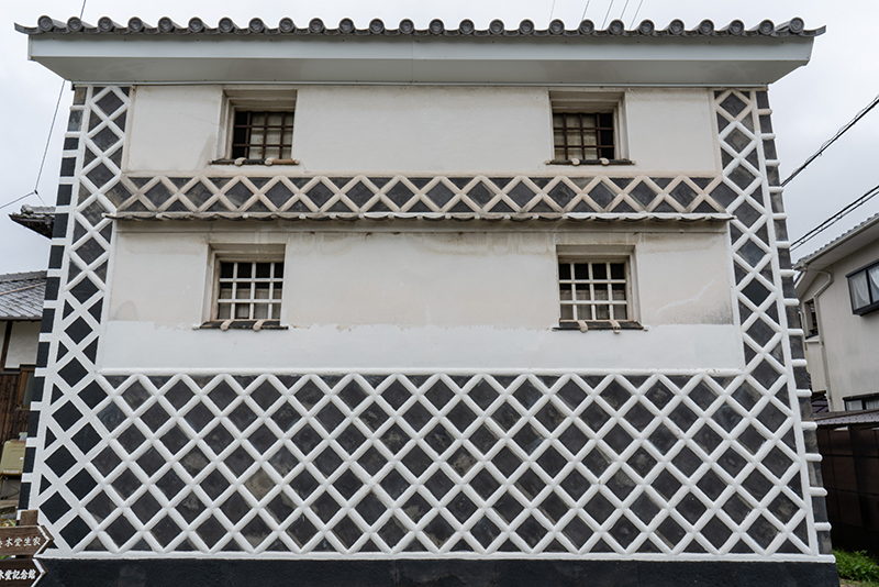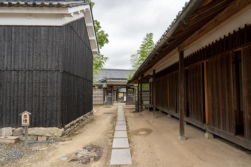 岡山らしいなまこ壁と焼板の路地など、
