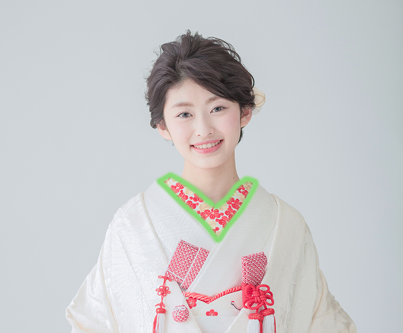 新婦様の首元・胸元部分や裾元から