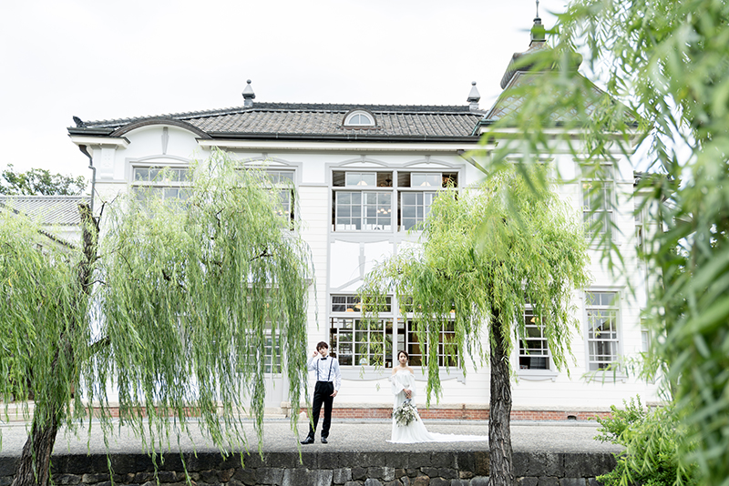 柳の木々と 白壁の西洋建築を取り入れた