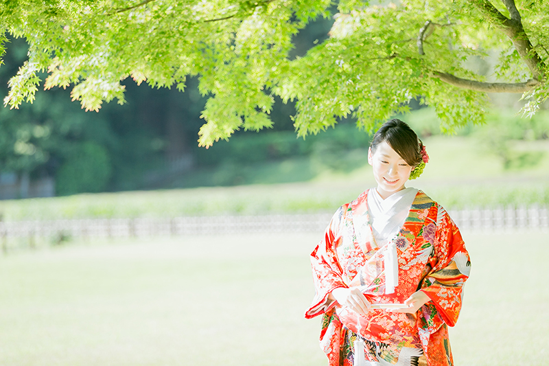とっても美しい緑の園内は お衣装をぱっと映えさせてくれます^^