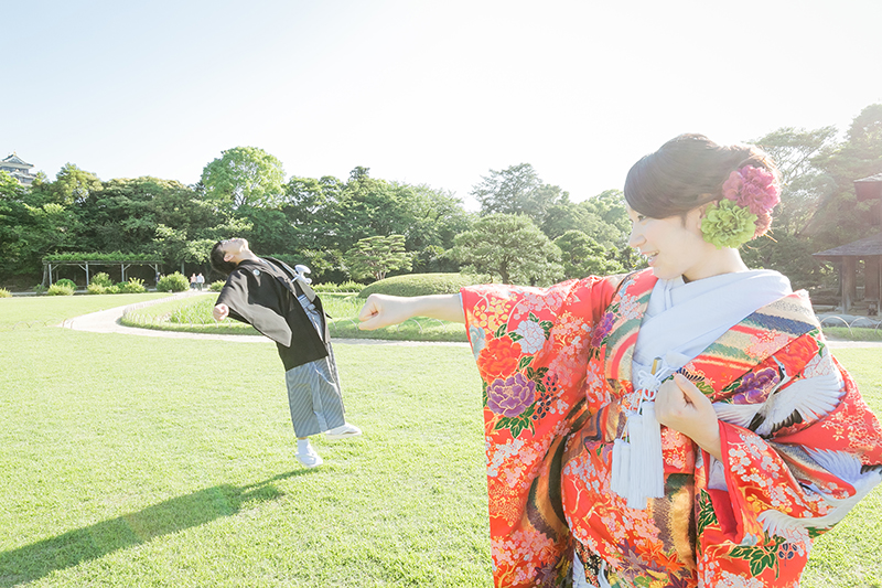 撮影で岡山後楽園を 選ばれると、思い出の同じ場所に、また何度でも帰ってくることができるのも