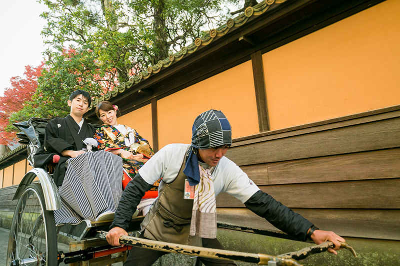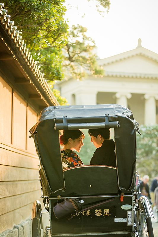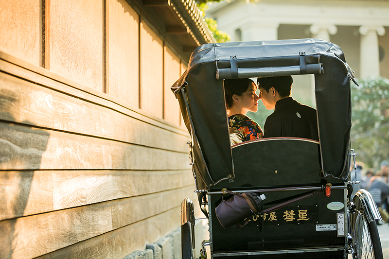 夕暮れの陽ざしと 人力車の窓からのぞく 幸せいっぱいのお二人の姿☆☆